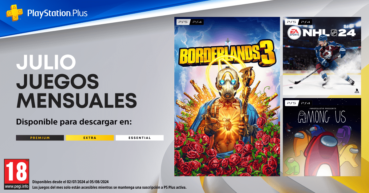 Borderlands 3, EA SPORTS™ NHL 24 y Among Us son los juegos del mes de julio para los usuarios de PlayStation®Plus