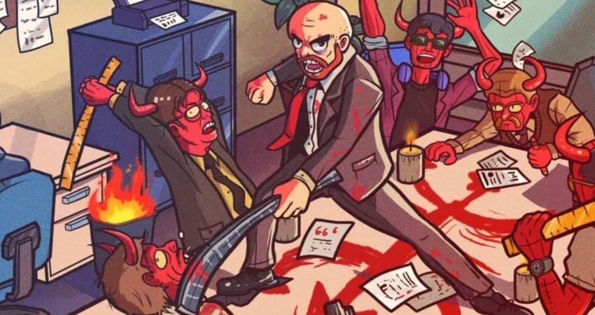 Narrativamente, el juego no busca profundidad tradicional, pero sí construye una identidad clara. La idea del “infierno corporativo” no es solo un chiste, sino un marco temático que da coherencia a todo el sistema. Las mecánicas, los enemigos, los objetos… todo gira en torno a esta sátira del entorno laboral, convirtiendo la rutina en violencia y el estrés en caos jugable.
